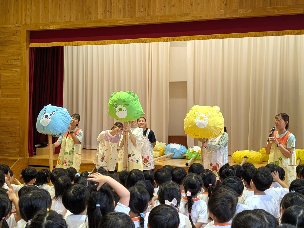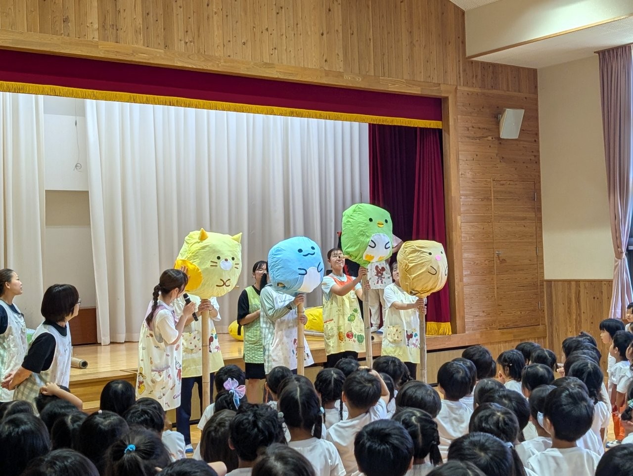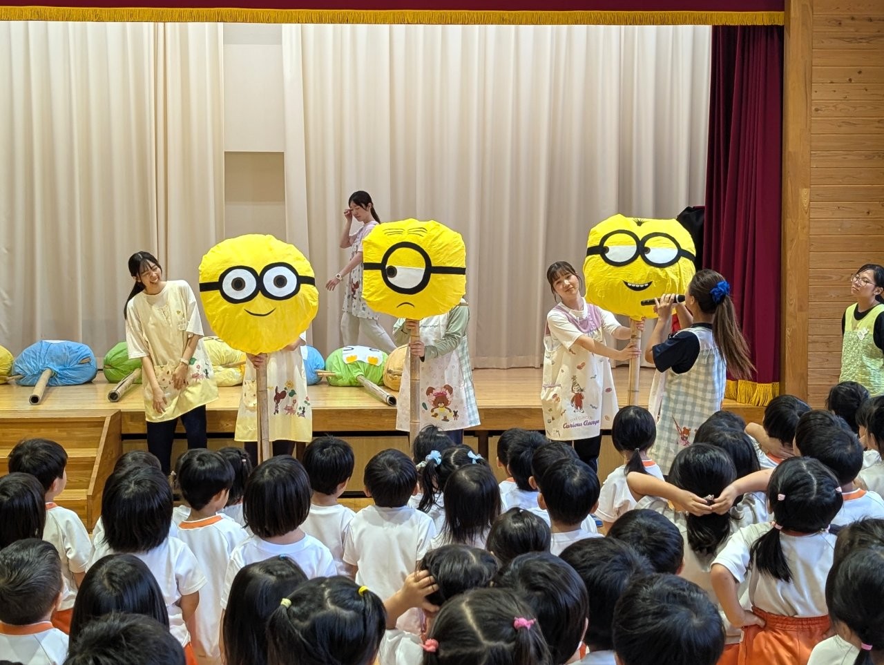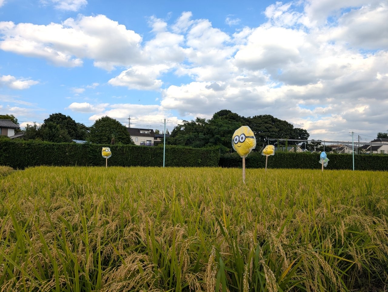 2学期の始業式では各クラスで作成した案山子を子どもたちに紹介し、先日にはバスの先生が田んぼに飾りつけしてくれました✨