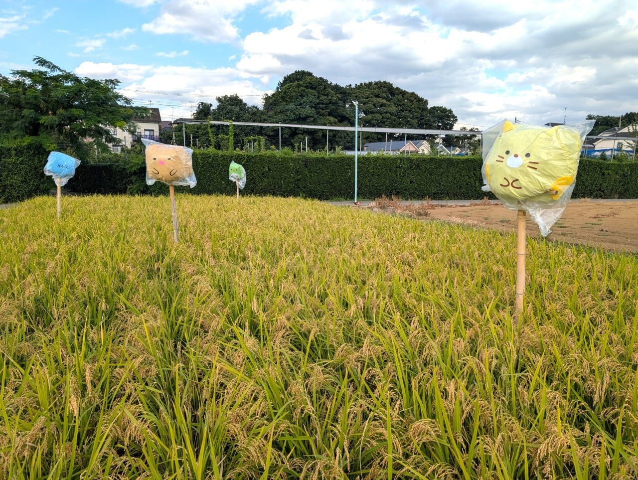 案山子さん、子どもたちの願いと想いが詰まったお米を見守ってくださいね😃