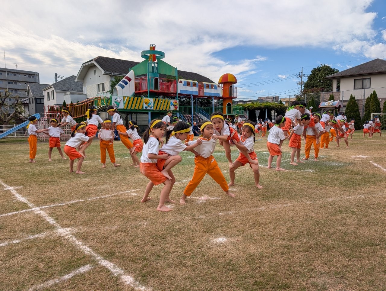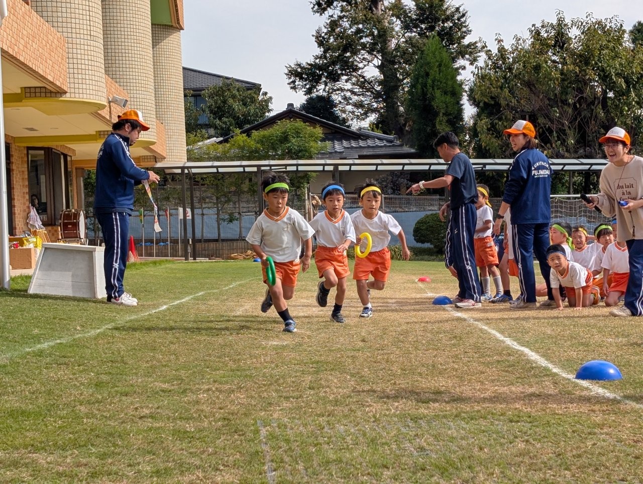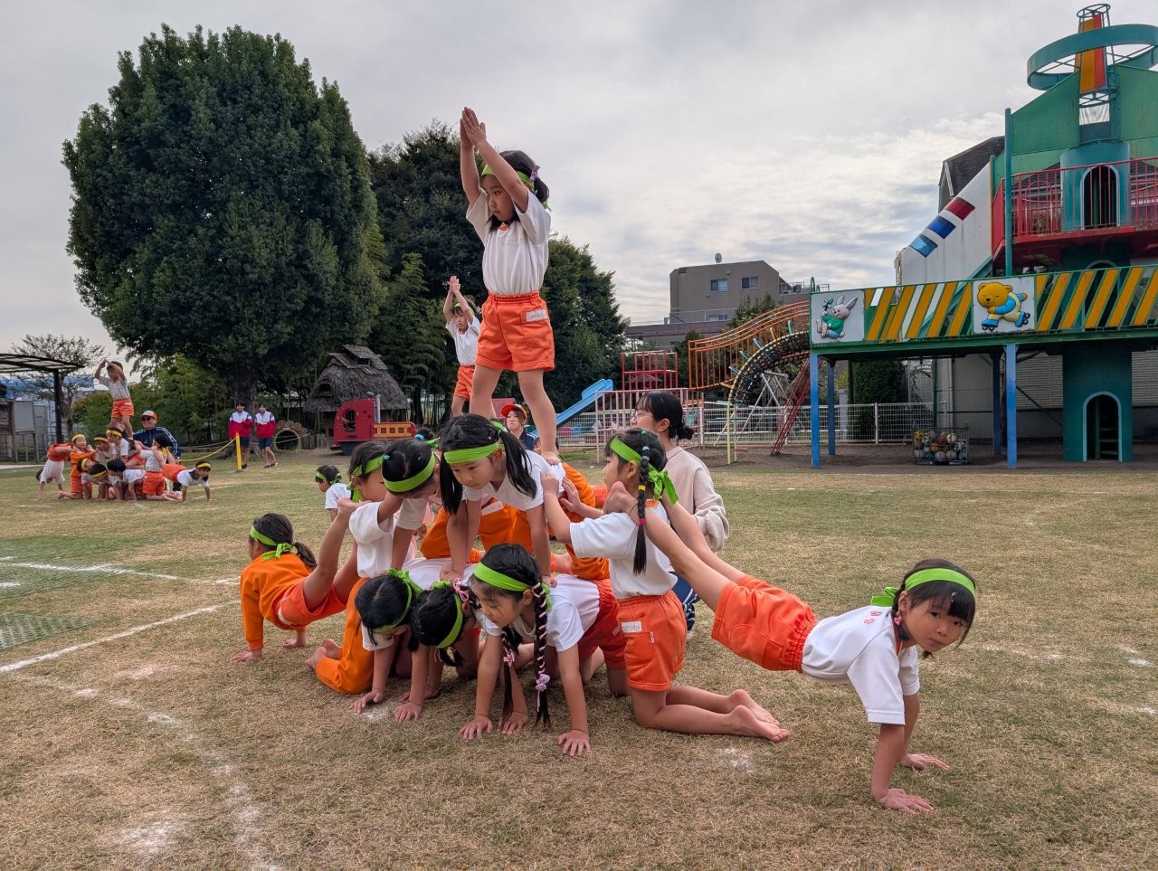 かけっこ、リズムダンス、玉入れ、綱引き、組み体操、リレーの競技に