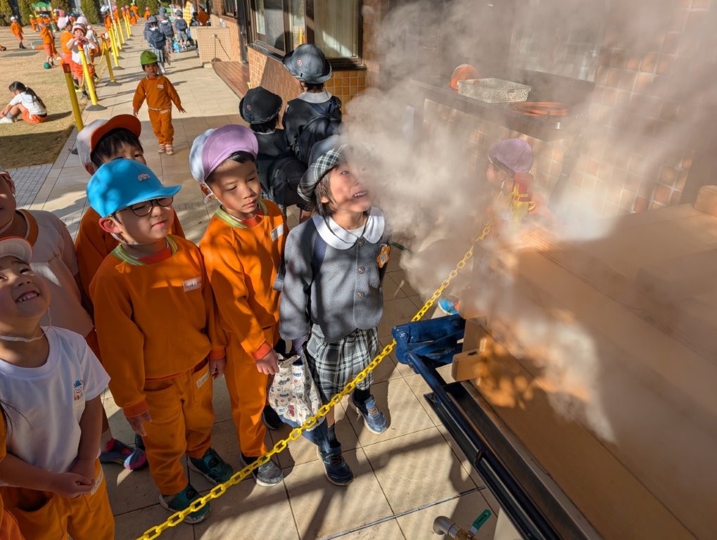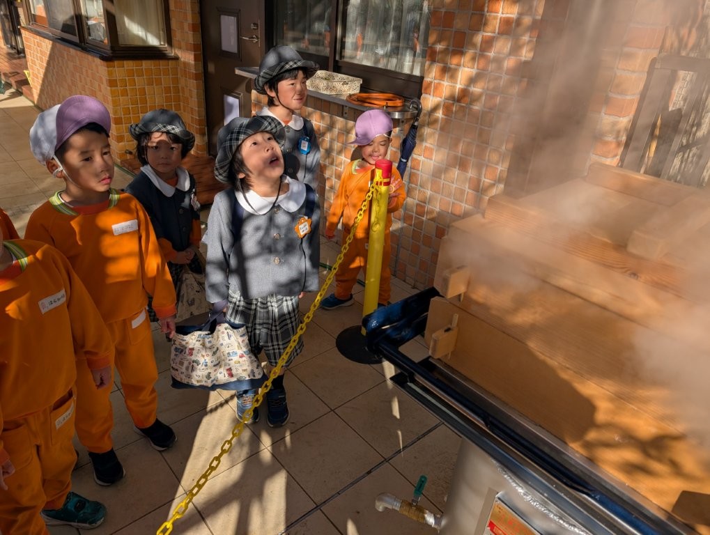 湯気モクモクのボイラーに興味津々の子どもたち✨